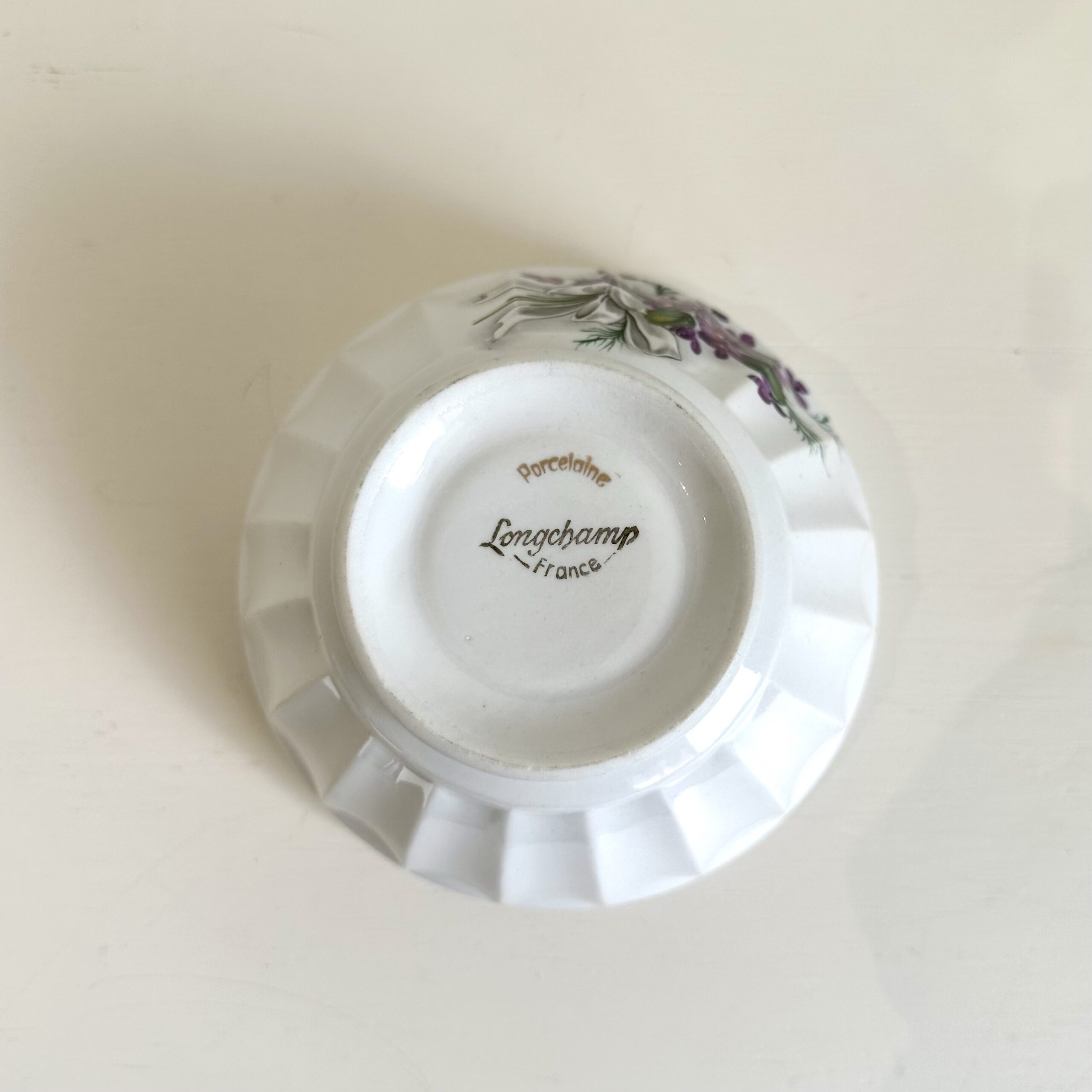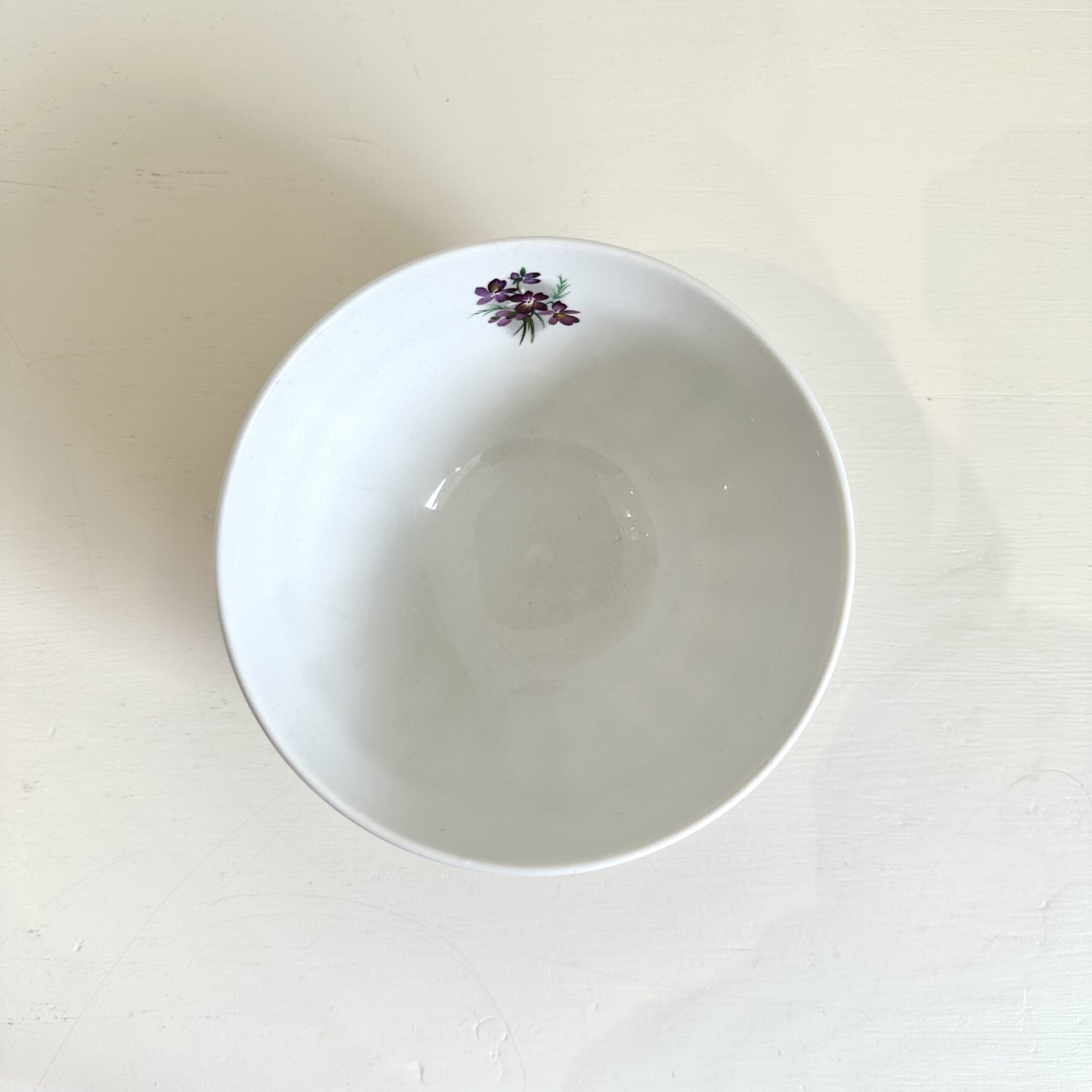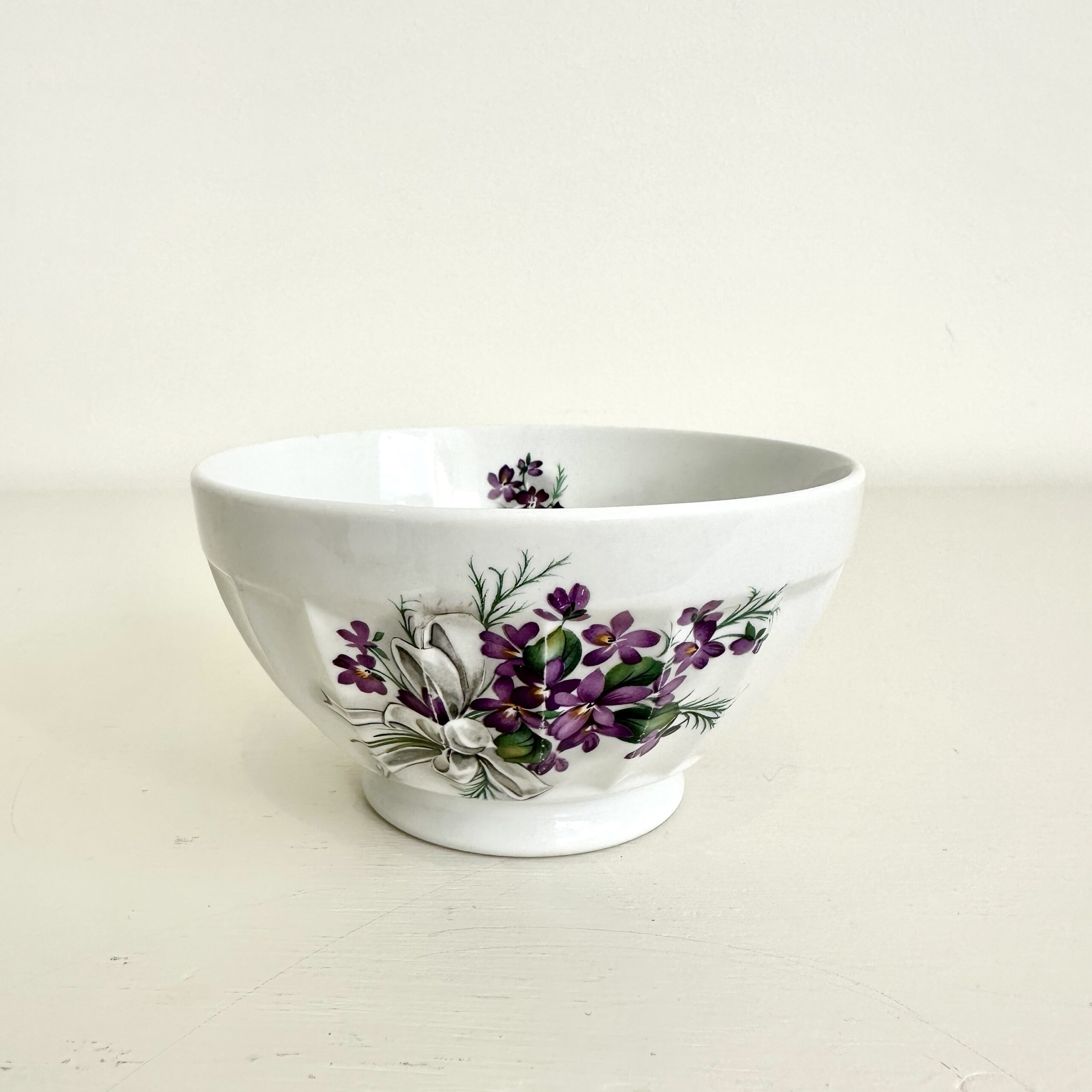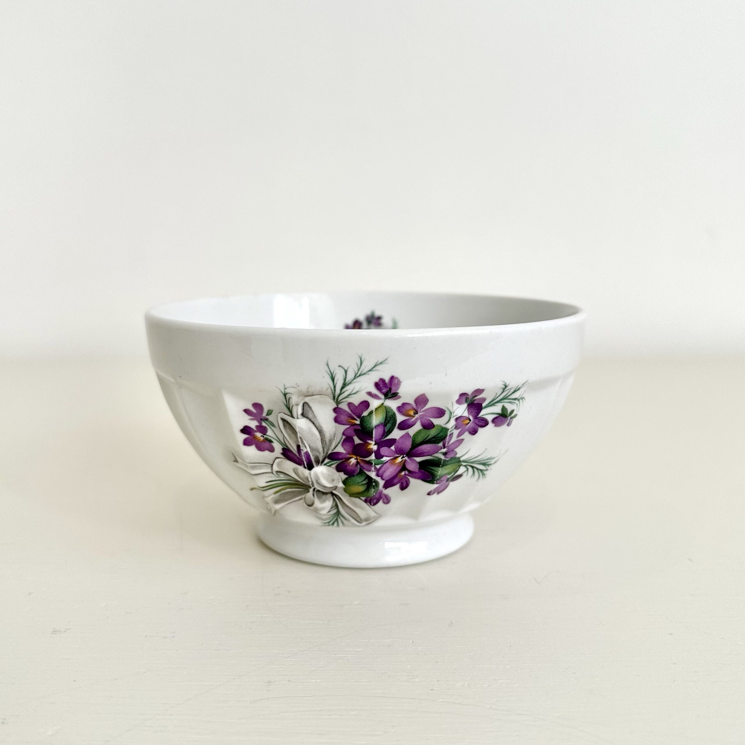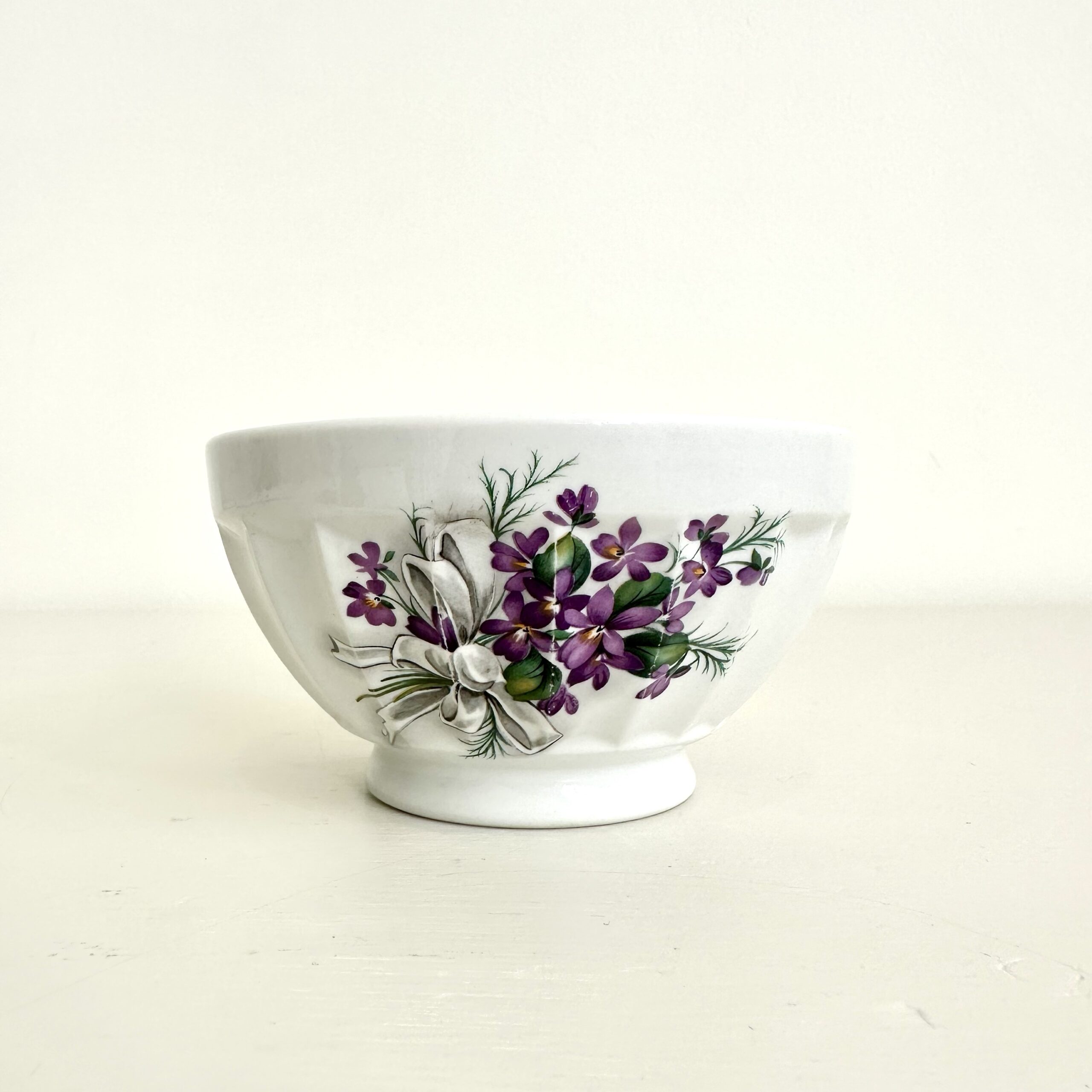 Smukt dekoreret med violer, både udvendigt og indvendigt.